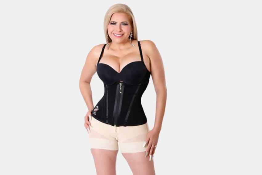 Cinturillas sensación extrema. Tela alta compresión, forro algodón, elástico ancho con 15 varillas de soporte para una cintura de reloj de arena.