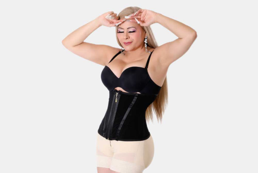 Cinturillas sensación extrema. Tela alta compresión, forro algodón, elástico ancho con 15 varillas de soporte para una cintura de reloj de arena.